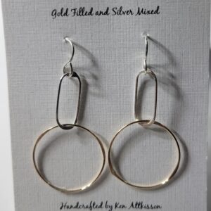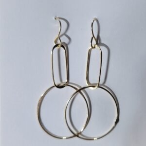 14K Gold Filled Handmade Earrings Two Medium Circles Long